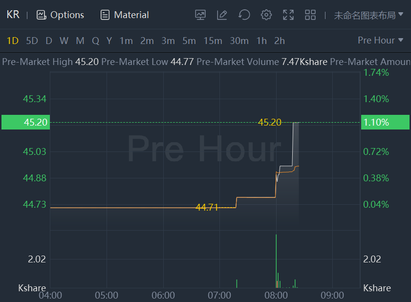 Shares of Kroger Co. rose 1.1% in premarket trading Thursday, putting them on track for a fourth-straight gain, after the supermarket operator announced a new $1 billions stock repurchase program.