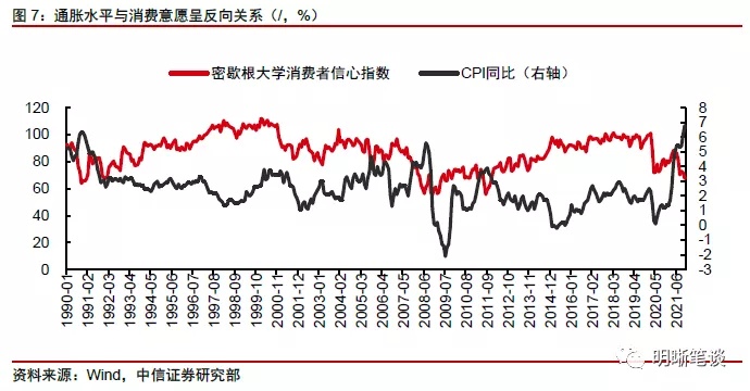 通胀风险上行,通胀隐患显化,美联储紧缩政策提前的必要性增强。与会人员指出工资增长、全球供给侧摩擦、住房成本上涨、病毒的新变种或将推动通胀保持高位水平。劳动力短缺导致的工资全面快速增长,可能会进一步推动通胀水平上升,持续的实际工资增长超过生产率增长可能会引发薪酬与物价螺旋上升。此外,通胀对于消费需求抑制作用开始显现,11月零售额经通胀调整后(实际值)同比为13.31%,增幅趋缓,同时消费信心指数下滑,表现出高通胀水平对消费的抑制作用。在此背景下,美联储承诺解决高通胀压力,并且一些与会者指出,在一些情况下,美联储在最大就业率完全实现之前提高联邦基金利率的目标区间可能是合适的,例如当就业目标和物价稳定目标与经济发展情况不匹配,并且通胀压力和通胀预期大幅持续上升可能妨碍美联储实现其长期目标时。