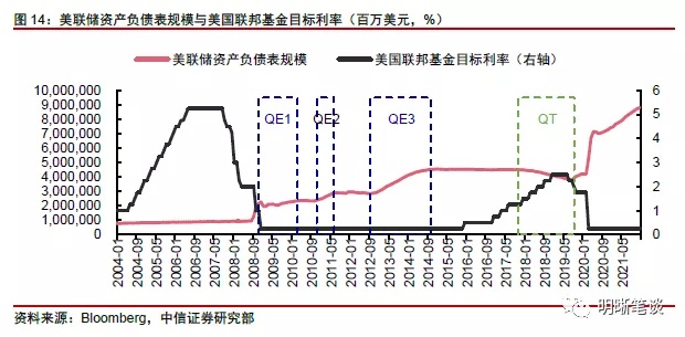 缩表进程会公开透明化,今年存在缩表的可能性。对于缩表的方式,与会者表示基于美联储所持资产的构成,缩表的原则与之前一致,即美联储的资产持有应主要由长期国债组成。为了实现这一组合,一些与会者倾向于相对较快地将机构MBS的本金再投资于美国国债,或者让机构MBS比美国国债更快地从资产负债表上消失。与上一次缩表相同的是这次也会设定缩减量的上限,以确保缩减速度可被预测。基于此,我们认为2022年存在缩表的可能性,缩表最早或于2022年年底开始。