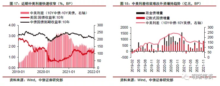 2021年12月FOMC会议纪要(2022年1月5日发布)表明了在经济基本面稳步复苏、通胀持续高位运行、疫情扰动有限的背景下,提前加息的必要性以及提前缩表的可能性。其预示的美联储紧缩加速或将推动美债利率快速提升,导致股市面临调整。对我国债市而言,美联储政策紧缩会导致的中美利差收敛,或对外资购债的节奏形成一定扰动,但难改外资增持趋势。