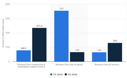 2020财年,Purplle的主要营收来源不再是产品(来源:Statista)