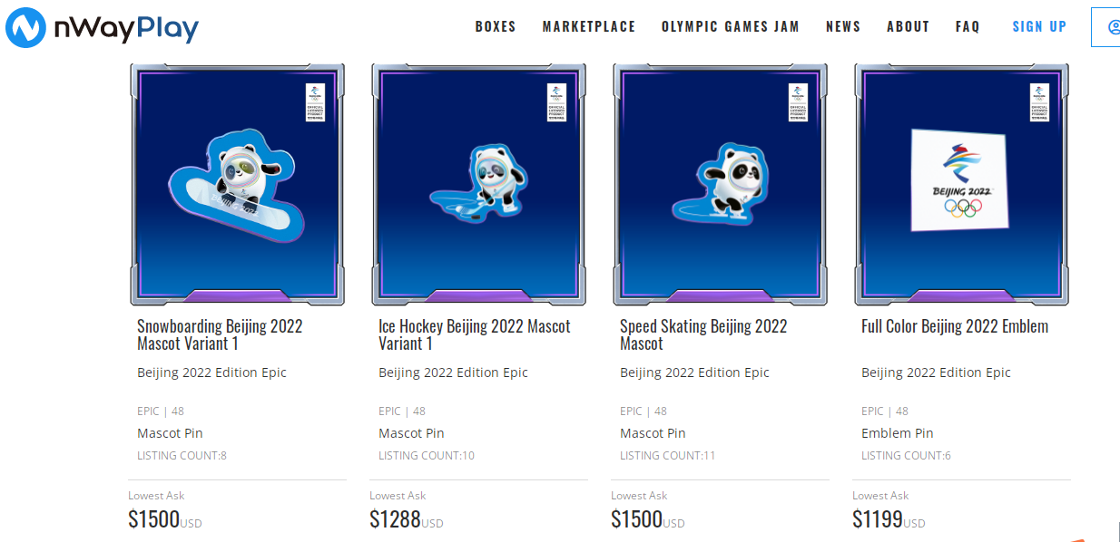除了2022年冬奥相关产品外,nWayPlay还上架了自1926年起奥运的数位徽章和海报等,其中售价最高的一个NFT为1988年首尔奥运会的传奇款海报,报价为9999美元。