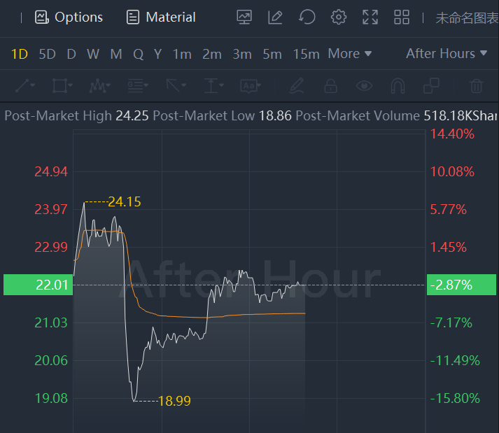 The shares were off 2.87% in after-hours trading Wednesday. They've lost about 25% over the past three months as the S&P 500 has declined 2.8%.