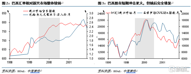 1999年美国加息周期:巴西放松汇率限制,日本延续低利率环境。相对其他新兴市场,巴西货币表现更弱,但股市在短期冲击后较快修复。