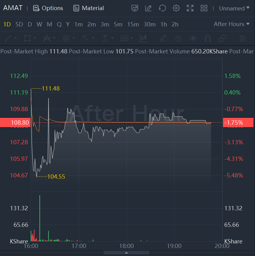 AMAT shares slipped 1.75% in after-hours trading. The company's key customers include Intel $(INTC)$ and Taiwan Semiconductor Manufacturing $(TSM)$.