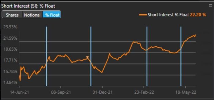 According to the S3 Partners data, short interest is equivalent to 23% of GameStop's float.