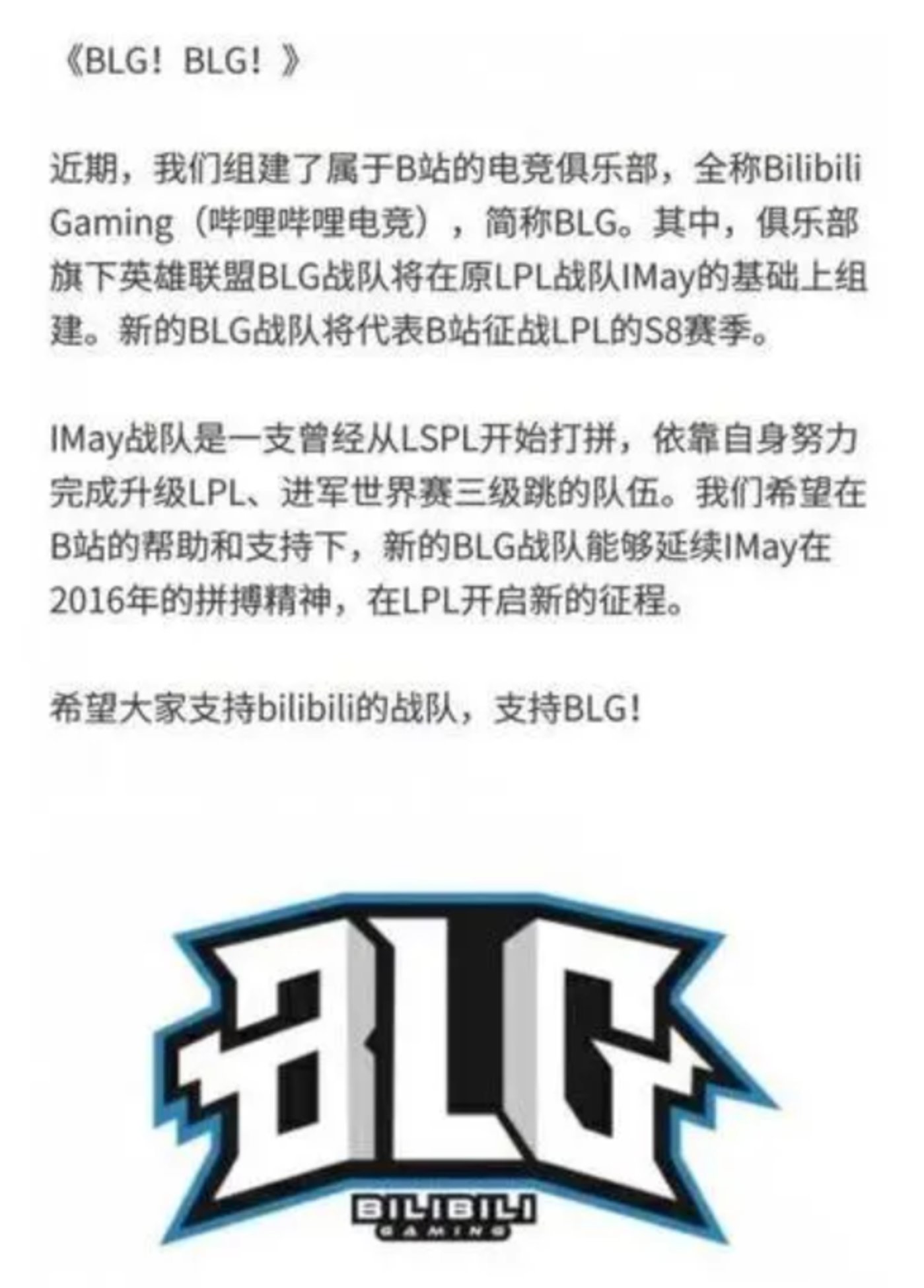 (2017年12月18日 B站宣布组建BLG电竞俱乐部)