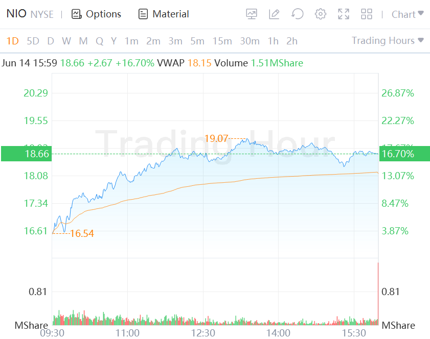 Nio stock has gained 16.7% to $18.66 on Tuesday ahead of a launch event on Wednesday. The company is expected to reveal its much-anticipated ES7 SUV -- it teased a video of something -- and the hope is that it will help drive new sales through 2022.But Nio is also benefiting from what looks to be a reassessment of Chinese stocks by investors. While the S&P 500 has fallen 0.3% and the Dow Jones Industrial Average is off 0.5%, the iShares MSCI China ETF has gained 3.1%. That's helped boost not only Nio, but Li Auto, which is up 10.9%, XPeng, which has risen 7.52%, and Alibaba Group Holdings, which is up 6.8%.