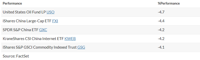 As usual, here's your weekly look at the bottom and top ETF performers over the past week through Wednesday.