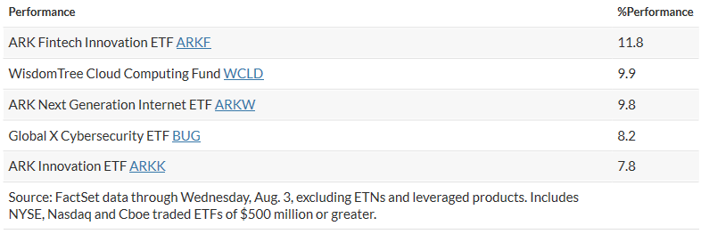 The SPDR S&P Kensho New Economies Composite ETF $(KOMP)$, which holds more than 500 stocks and falls under the broad innovation category, has had inflows every month this year even as thematic funds have been under pressure, according to Bartolini. The fund gained 10.7% in July but for 2022 remained down 21.7% through Wednesday, FactSet data show.