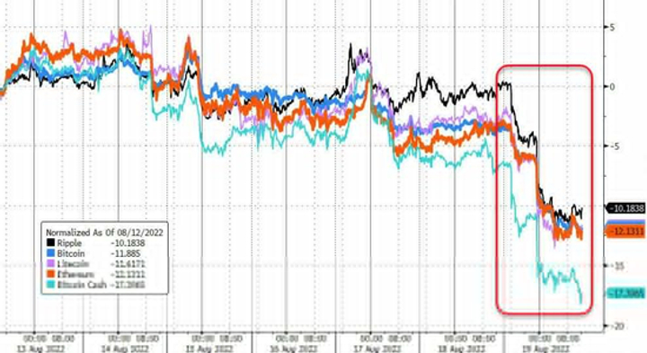 加密货币的表现似乎也受到了美联储鹰派立场的波及,周五出现暴跌。