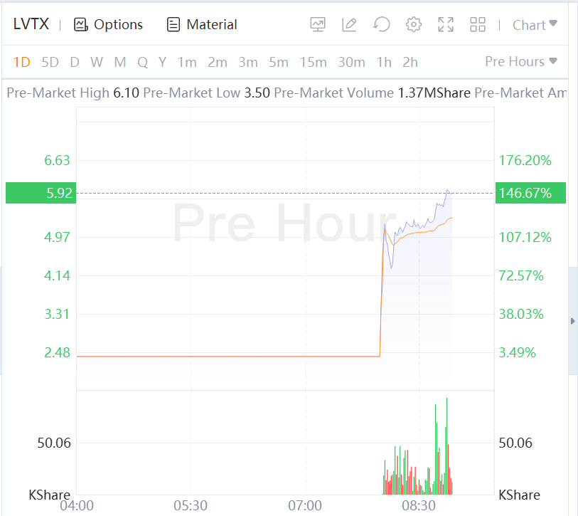Shares of LAVA Therapeutics rose to $5.92 in pre-market trading after closing Friday at $2.40.