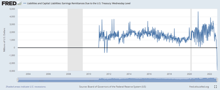 这是一个明显的转变,尽管并不出人意料。在金融危机后的几年里,美联储从不断扩大的资产负债表中赚取了数十亿美元额外利息收入。当然,美联储不是一个“普通”的投资者,它不会破产,其庞大的债券组合所造成的任何运营损失只是意味着它向美国财政部汇出的钱更少。