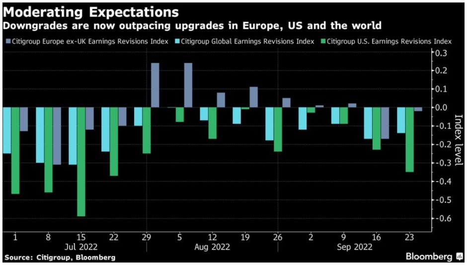 盛宝银行股票策略主管Peter Garnry表示:“第三季财报将令人失望,分析师预测有明显下行风险。第三季度收益面临的主要风险是,生活成本危机影响了消费品需求,以及工资上涨侵蚀了企业利润。”