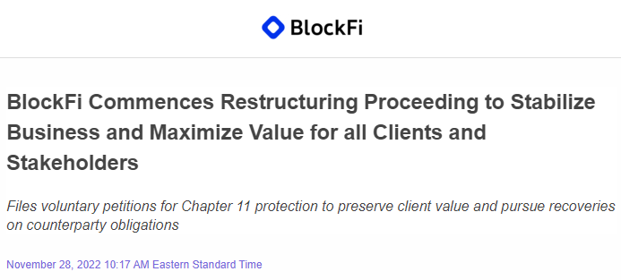 当地时间周一(11月28日),加密货币贷款机构BlockFi宣布,公司已向美国新泽西州地区的法院申请启动破产重组程序。
