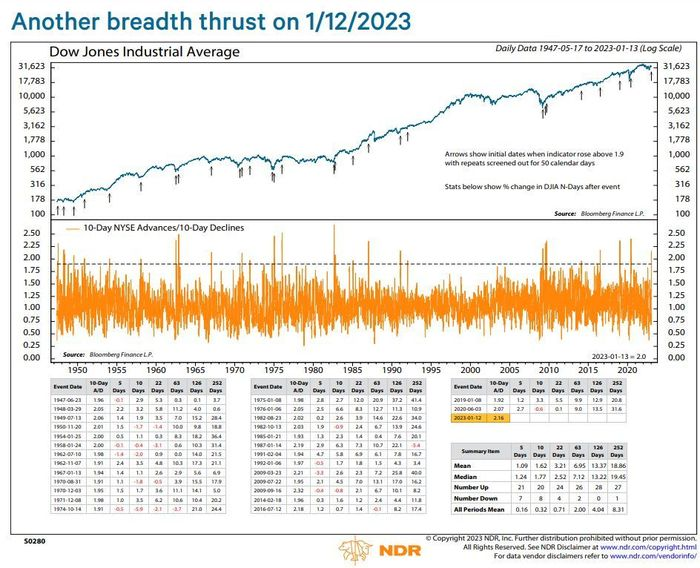 "But because these thrust indicators are becoming more frequent, we now say 'trust but verify.' And the verification comes from intermediate-term breadth indicators."