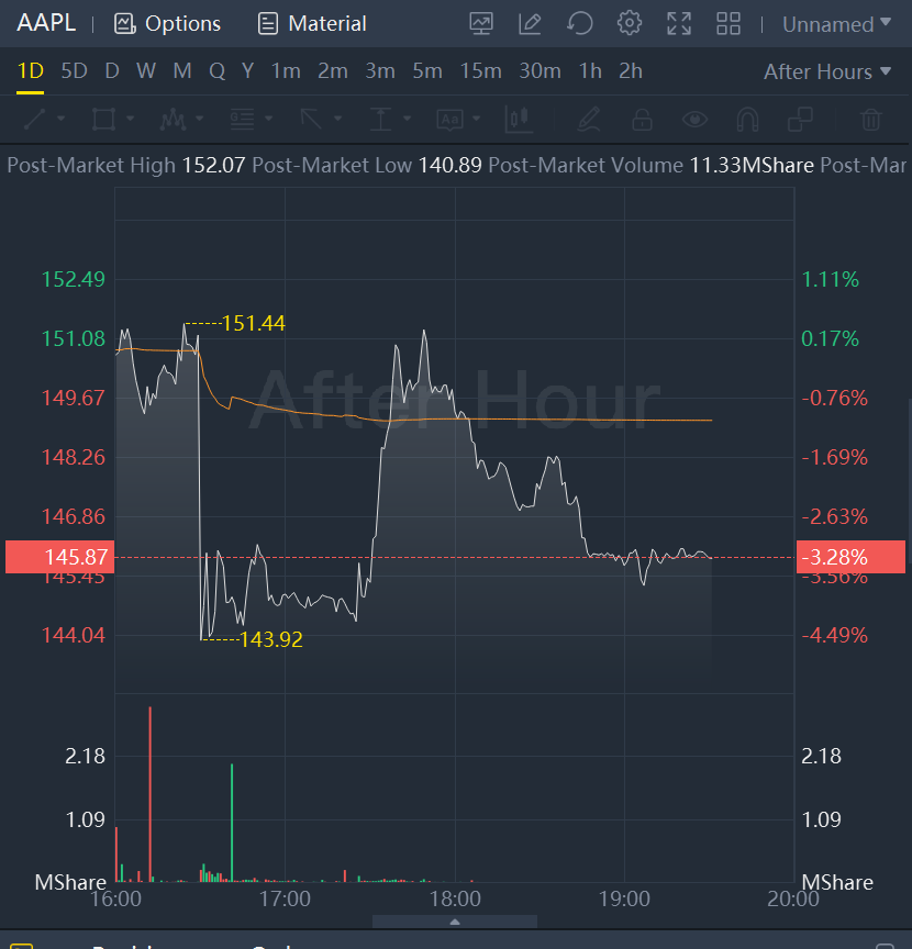 Apple shares $(AAPL)$ were down 3.28% in after-hours trading Thursday.