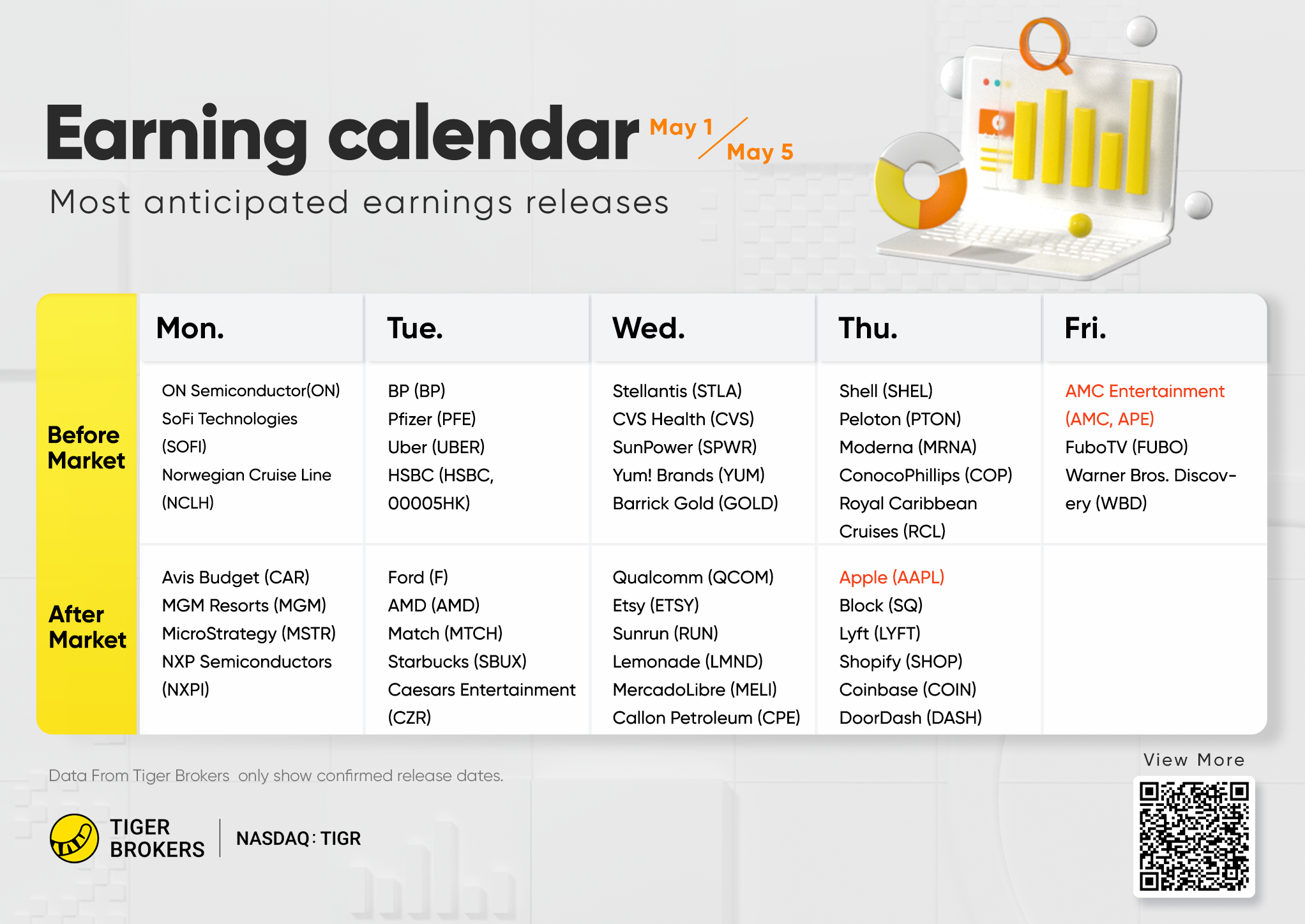 Wednesday’s earnings highlights will include CVS Health, Kraft Heinz, and Qualcomm. On Thursday, Anheuser-Busch InBev, Apple, Booking Holdings, ConocoPhillips, Moderna, and Shopify report. Cigna and Warner Bros. Discovery close the week on Friday.