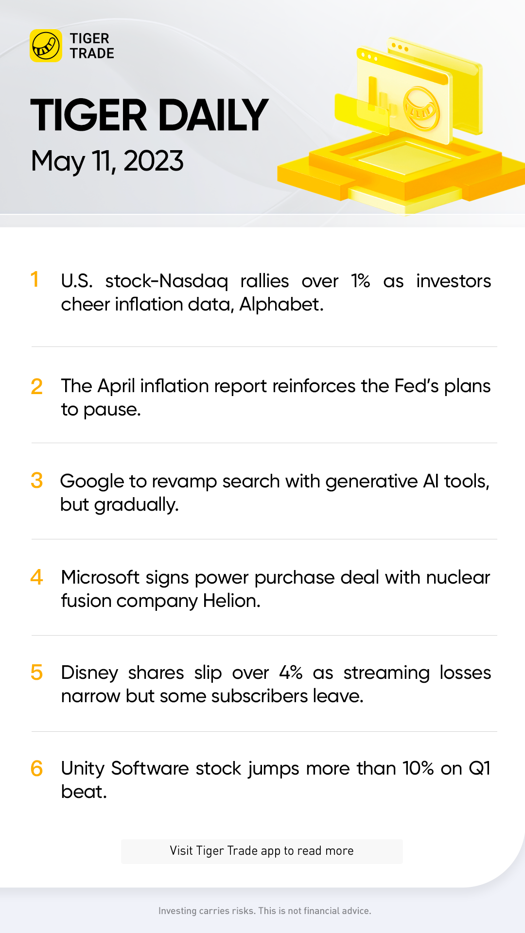 The Labor Department's Consumer Price Index (CPI) rose 4.9% in April from a year ago, compared with expectations of a 5% increase, raising hopes that the Federal Reserve's interest rate hiking cycle is close to an end. Month-over-month CPI in April rose 0.4% after gaining 0.1% in March.
