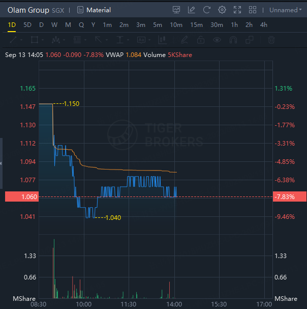 Shares fell 7.83% to touch S$1.06 on Wednesday afternoon.