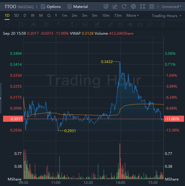 But T2 Biosystems' stock ended Wednesday's session down 11%. The company's shares ended Tuesday's session down 26.1% to snap a two-day winning streak that saw a 65.6% gain Monday, their biggest single-day percentage gain since Sept. 11, 2019.