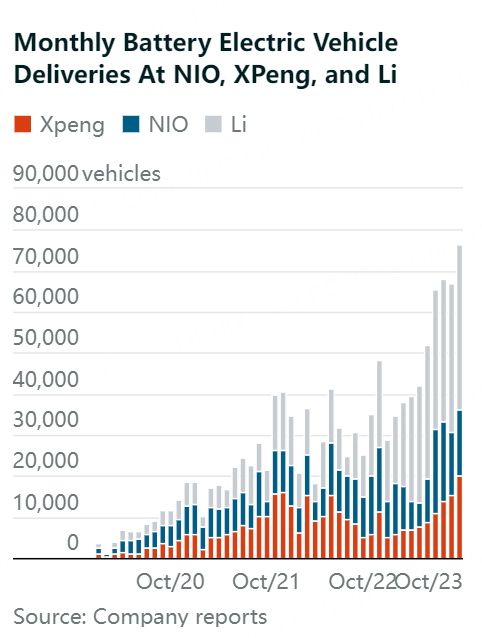 Monthly delivery results from Chinese electric-vehicle makers NIO, XPeng, and Li Auto looked great. That’s a relief for Tesla investors.