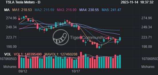 Stock in the electric-vehicle company closed up 4.2% on Monday at $223.71, while the S&P 500 and Nasdaq Composite were both close to flat.