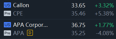 Callon Petroleum gained 5.4% while APA Corporation dropped 4.1% in premarket trading Thursday.