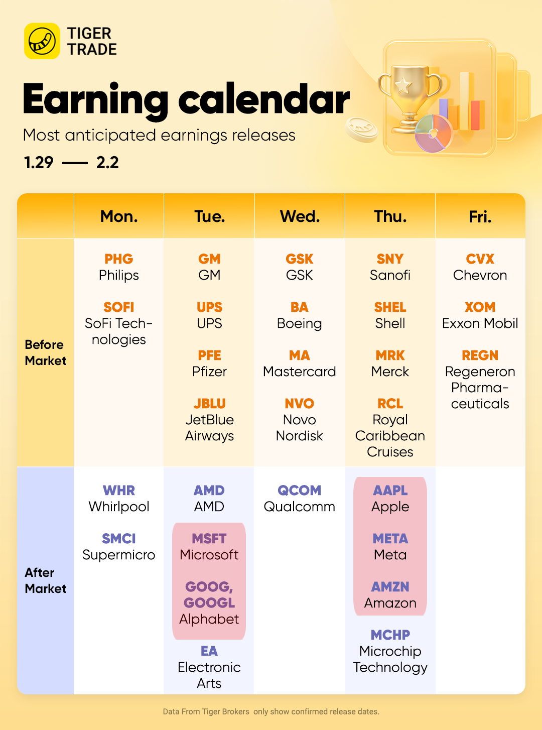 Fourth-quarter earnings reports this week will begin with Nucor on Monday, then Microsoft, Alphabet, Pfizer, General Motors, Starbucks, and Advanced Micro Devices on Tuesday.
