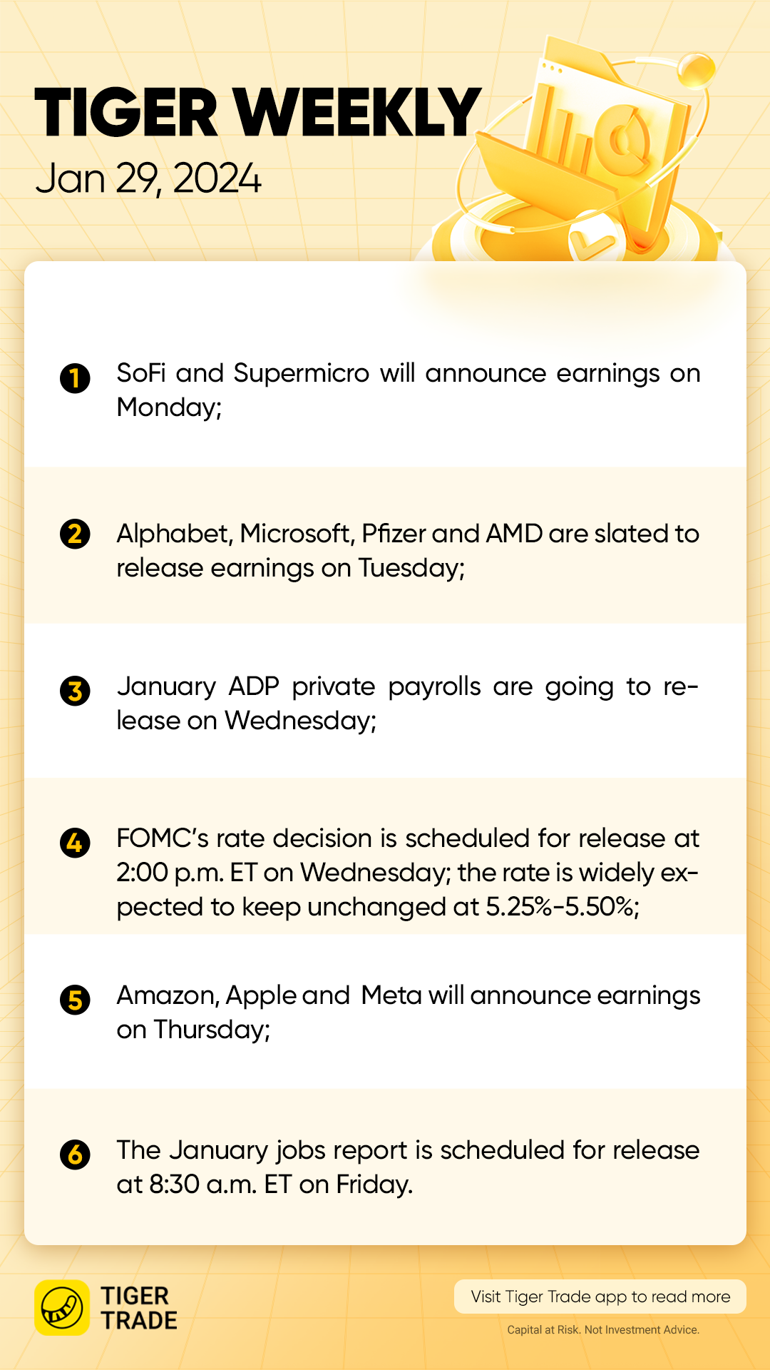 It will be a packed week on both the macro and micro fronts. There’s a Federal Reserve policy meeting, January jobs data, and earnings reports from around 100 S&P 500 firms to look forward to, including the biggest companies on the market.