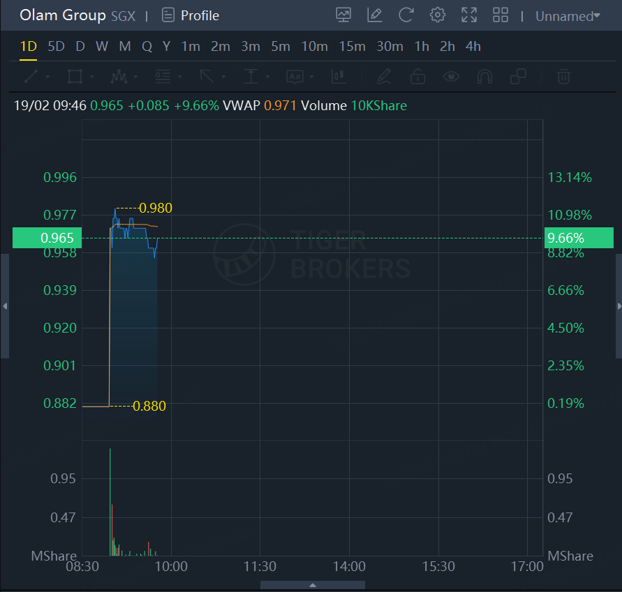 Olam Group shares surged 9% on the news.