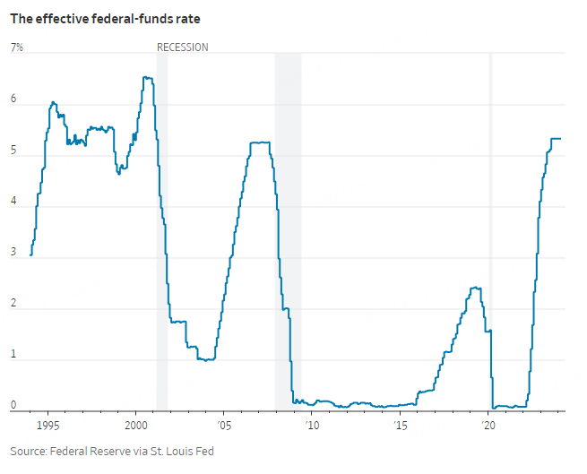 The central bank will keep its benchmark interest-rate target at a range of 5.25% to 5.5%, a 23-year high, when its two-day meeting ends Wednesday. The focus will be on its latest interest rate and economic projections.