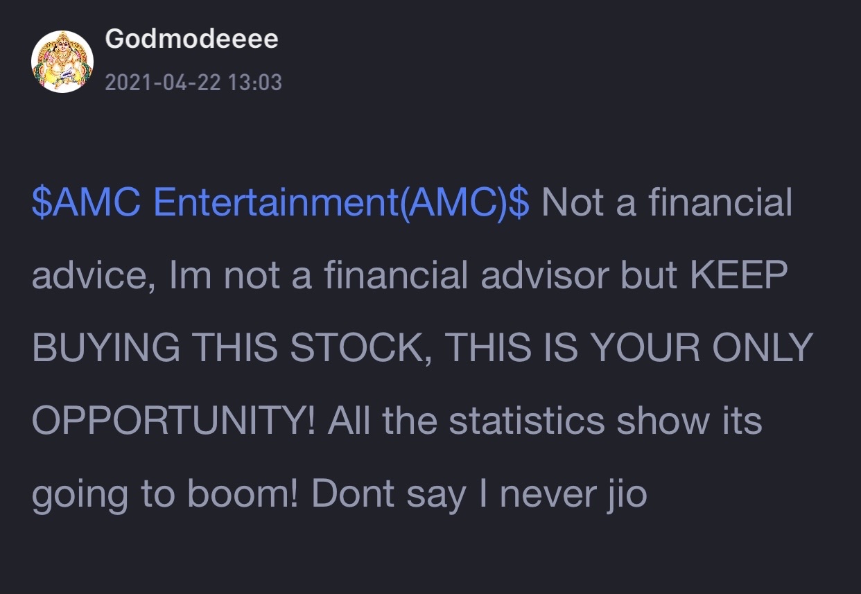 $AMC Entertainment(AMC)$I told everyone to get AMC during april and look what happened, im telling everyone once again to get more! Dont say I never jio! (Not financial advice)
