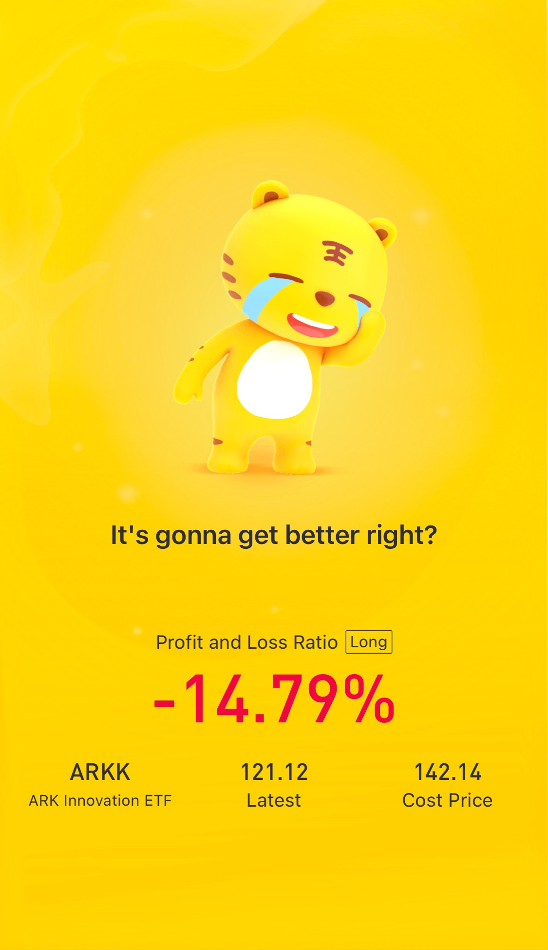 $ARK Innovation ETF(ARKK)$Of course it isgoing to get better! Can't wait to average down the cost!