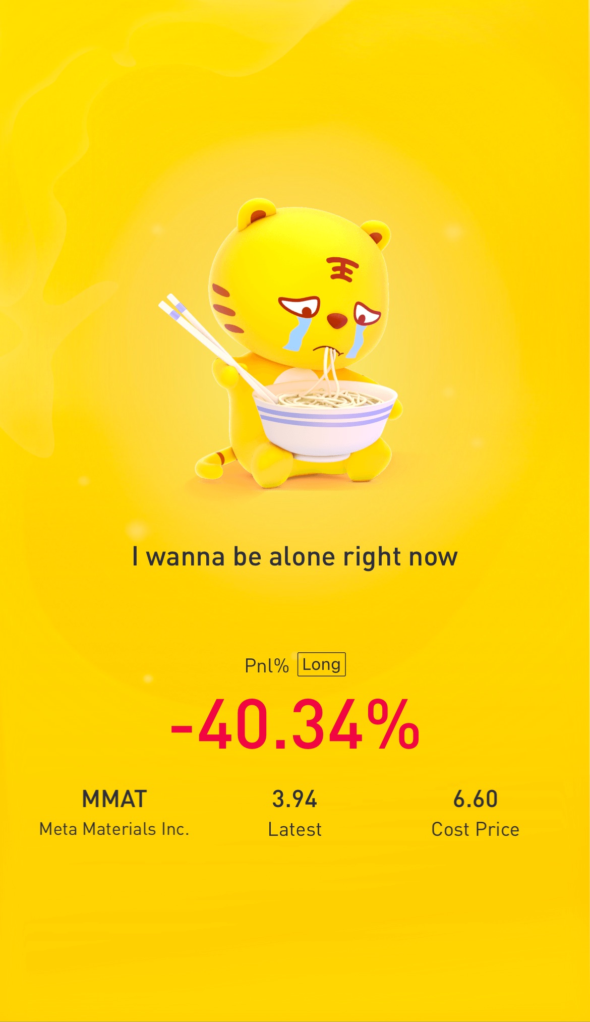 $Meta Materials Inc.(MMAT)$So you all don’tfeel alone. Holding 800 shares.