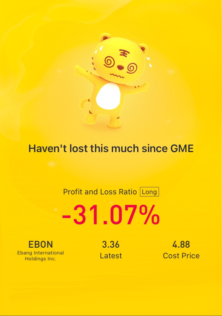 $Ebang International Holdings Inc.(EBON)$Still hanging on. Give me a like