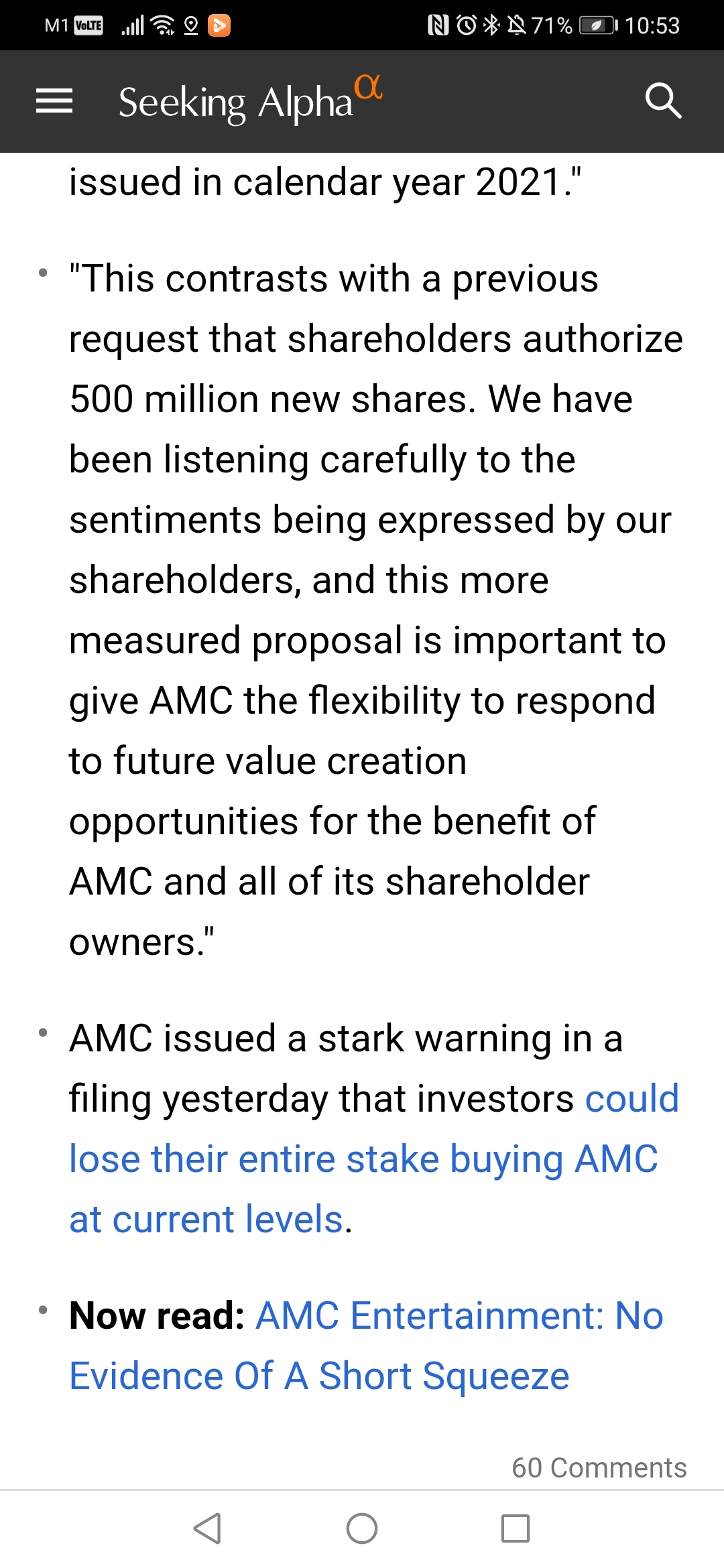 $AMC Entertainment(AMC)$even management says buying their shares at current lvl is dangerous. More than 25m new shares in 6 mths makes me feel this share will underprrform in the LT