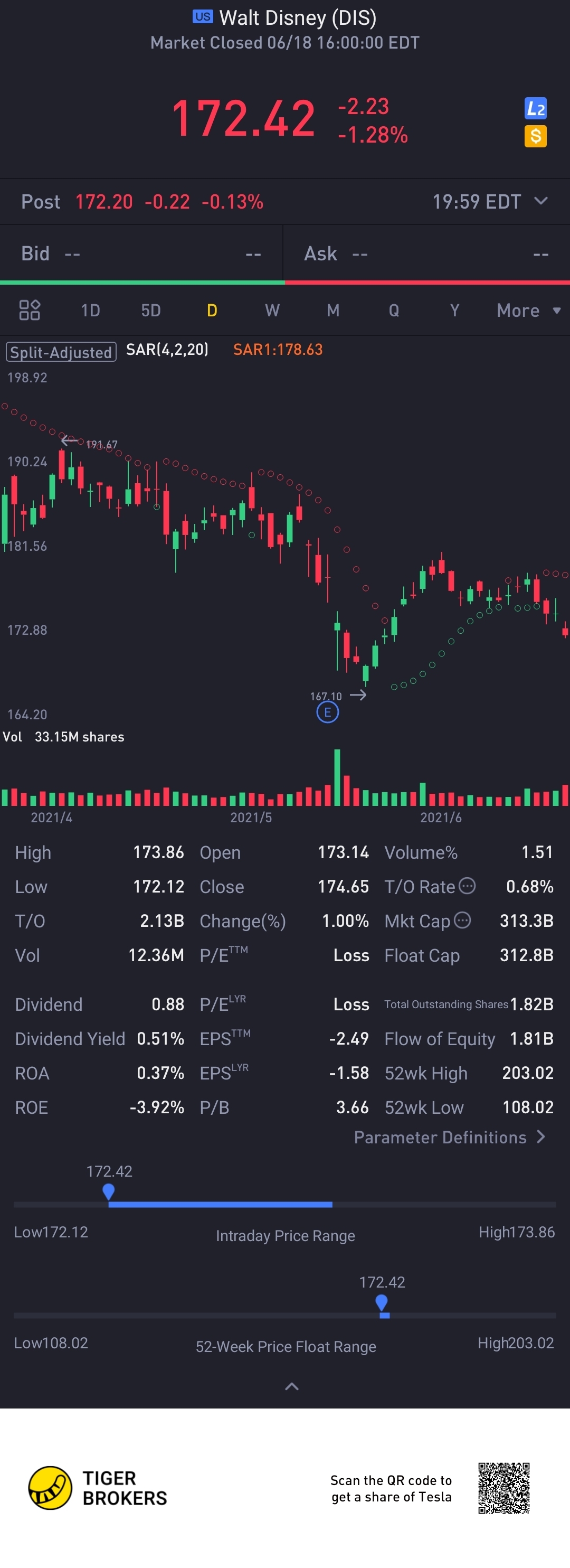 $Walt Disney(DIS)$lower low. Watching it to grab at opportunity