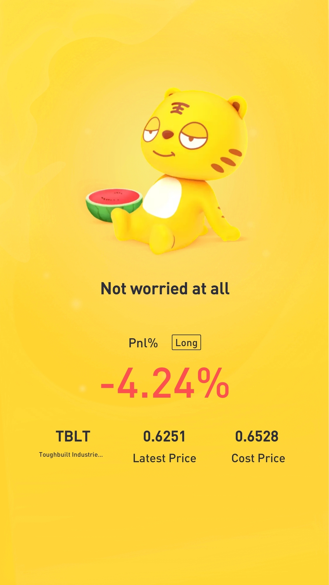 $Toughbuilt Industries, Inc.(TBLT)$hold like daimond. Dont sell low. At least wait till $3 like Xela