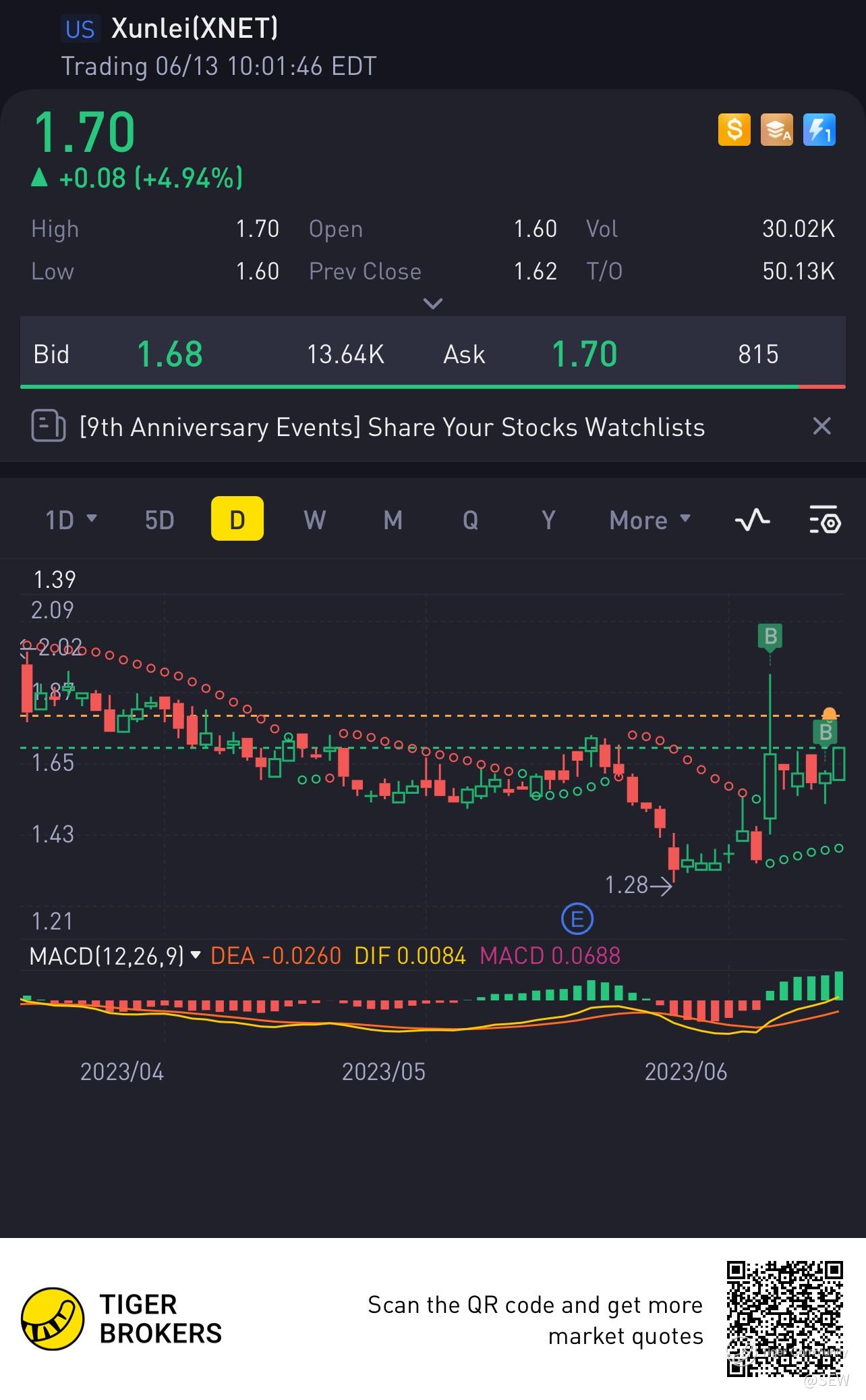 $Xunlei(XNET)$ Uptrend resumes after T+4. Likely to retest previous high!