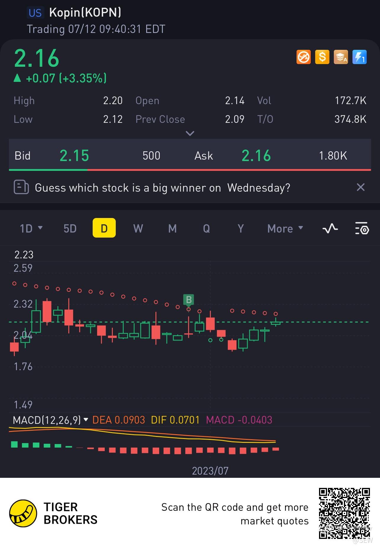 $Kopin(KOPN)$ Rising well, slow and steady. MaCD turning green soon!