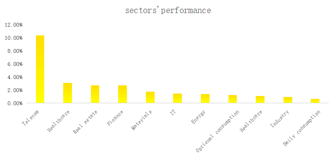 In terms of sectors, all rose last week, with the biggest increase in telecommunications services, with an increase of more than 10%:
