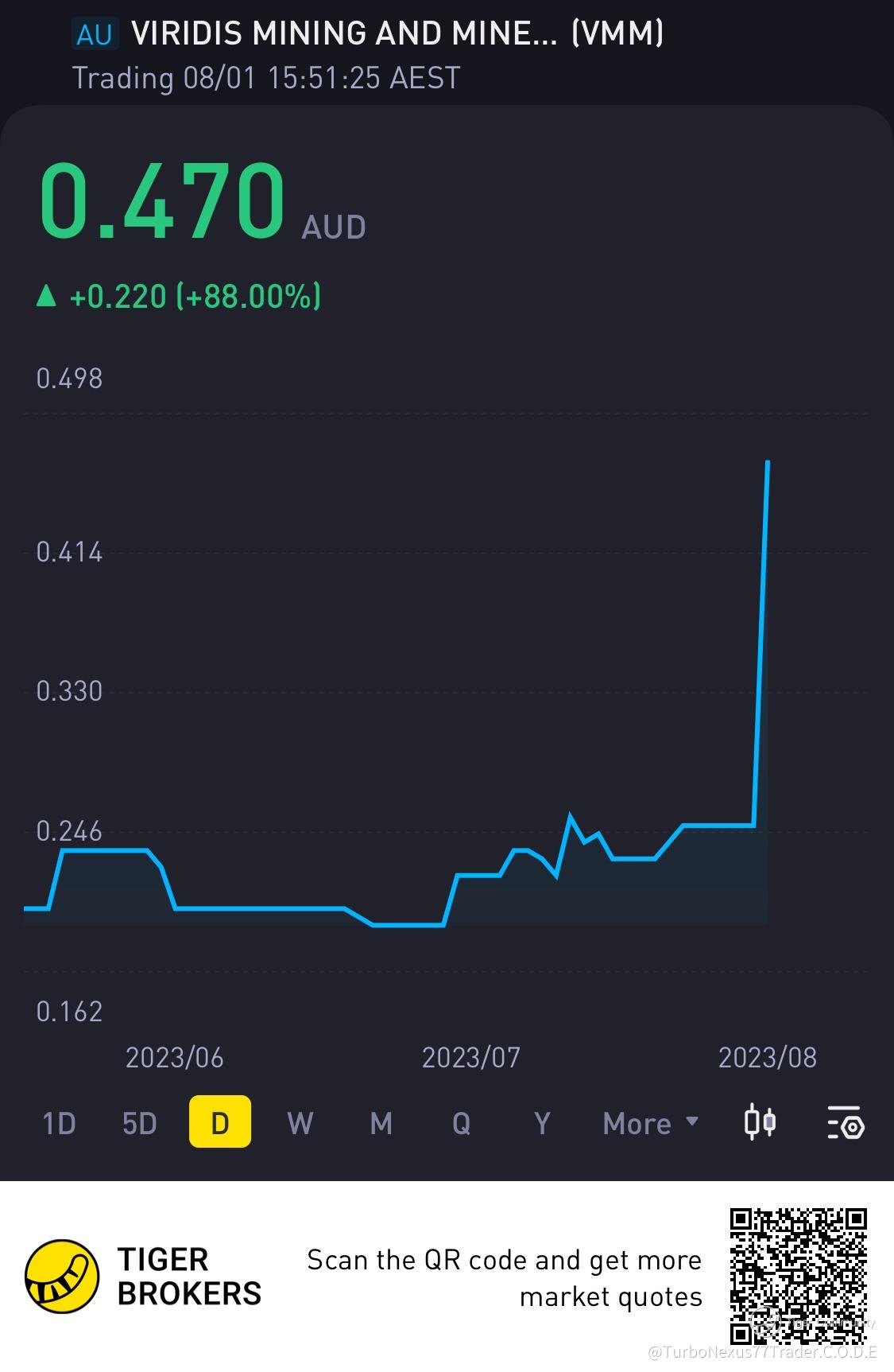 $VIRIDIS MINING AND MINERALS LIMITED(VMM.AU)$ Expecting open high tomorrow hit around 0.600 and by midday will see the company price merging bull around 0.650-0.700$