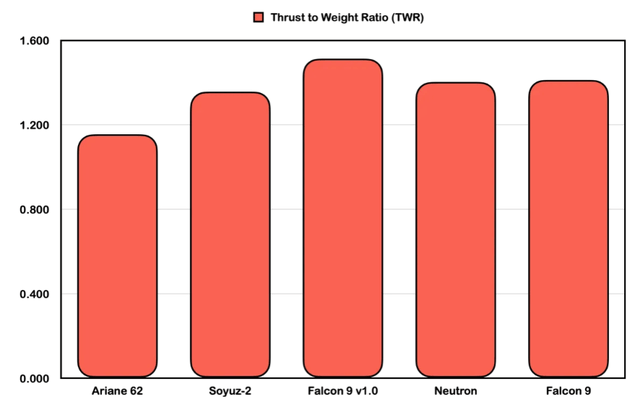 Thrust to weight ratio of Falcon 9 and Neutron (Medium)