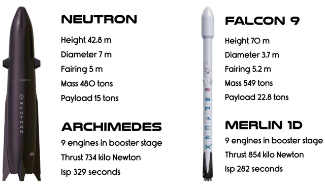 Comparison of key characteristics between Neutron and Falcon 9 (Medium)