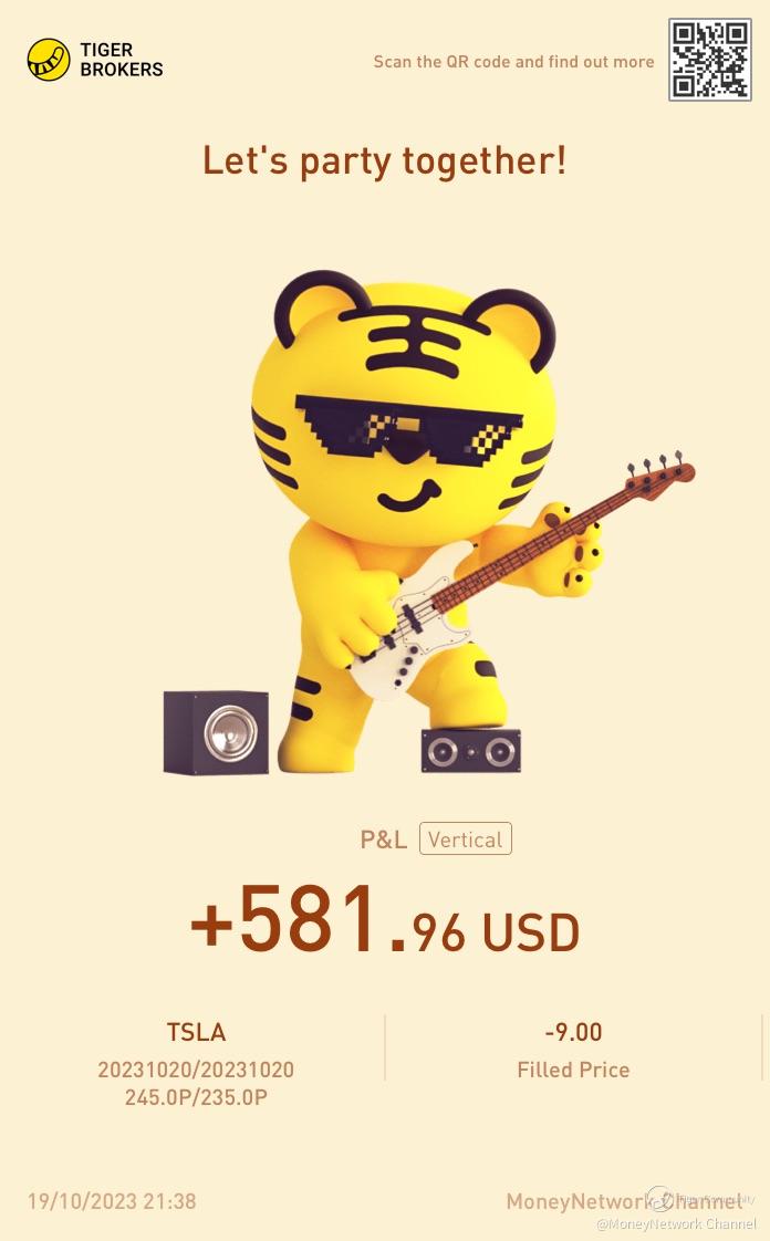 $TSLA VERTICAL 231020 PUT 245.0/PUT 235.0$ Overnight trade and pocketed $581. Good trade.