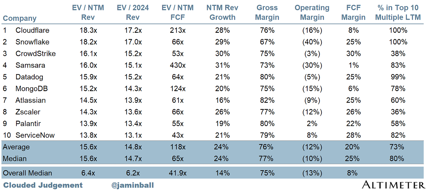 $Cloudflare, Inc.(NET)$ $Snowflake(SNOW)$ $CrowdStrike Holdings, Inc.(CRWD)$ $Samsara, Inc.(IOT)$ $Datadog(DDOG)$ $MongoDB Inc.(MDB)$ $Atlassian Corporation PLC(TEAM)$ $Zscaler Inc.(ZS)$ $Palantir Technologies Inc.(PLTR)$ $ServiceNow(NOW)$