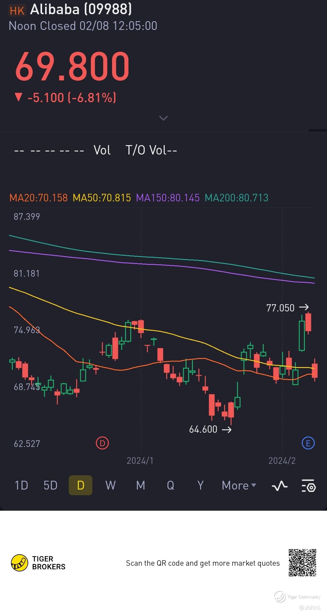 $Alibaba(09988)$ In the long run, market is a weighing machine. Whereas in the short run, it is a voting machine. The real problem I have is the definition of long run. LOL.