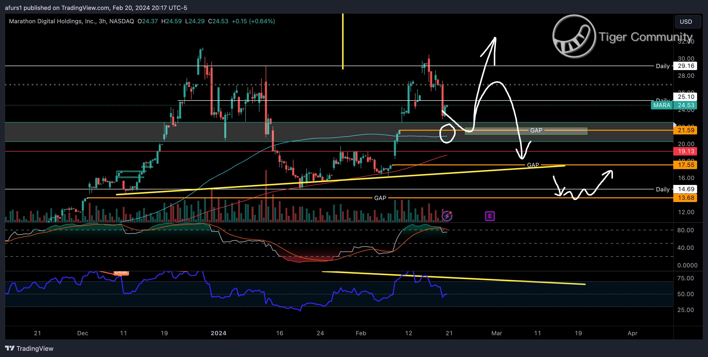 My third and last variant is the break below the current trend line as well as the gap below at $13/14 which would be an amazing long term entry. $Marathon Digital Holdings Inc(MARA)$