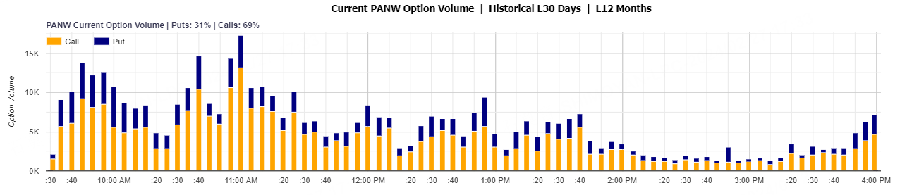 A total number of 468,609 options related to $Palo Alto Networks(PANW)$ was traded on Monday, 9.2 times higher than the 90-day average volume. Call options accounted for 69% of total options trading volume.
